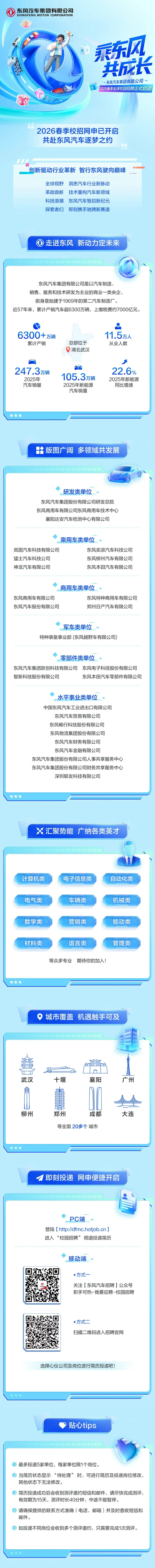 东风汽车集团有限公司2026春季全球校园招聘 时间:2026-04-07 15:50 作者:吴老师 半月讲坛温馨提示:信息均转载自官方网站,仅供参考,不构成相关服务。其最终解释权归相关单位所有,如对信息有疑问,请直接与相关单位联系。转载目的在于信息传递,我司不承担此类稿件其他行为的连带责任,如有侵权或需删除请联系我们。因此带来的不便敬请谅解! (责任编辑:吴老师) 上一篇:博世中国2026届春招网申全面开启 下一篇:华安证券招聘公告