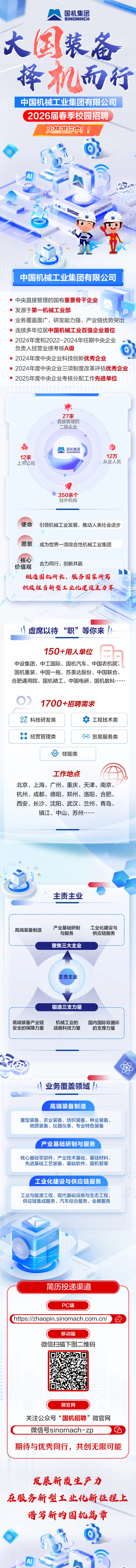 国机集团2026届春季校园招聘 时间:2026-04-15 16:32 作者:吴老师 半月讲坛温馨提示:信息均转载自官方网站,仅供参考,不构成相关服务。其最终解释权归相关单位所有,如对信息有疑问,请直接与相关单位联系。转载目的在于信息传递,我司不承担此类稿件其他行为的连带责任,如有侵权或需删除请联系我们。因此带来的不便敬请谅解! (责任编辑:吴老师) 上一篇:“梦工场”招商银行总行2027暑期实习生招聘 下一篇:中国铝业集团有限公司2026年春季招聘(第二批)