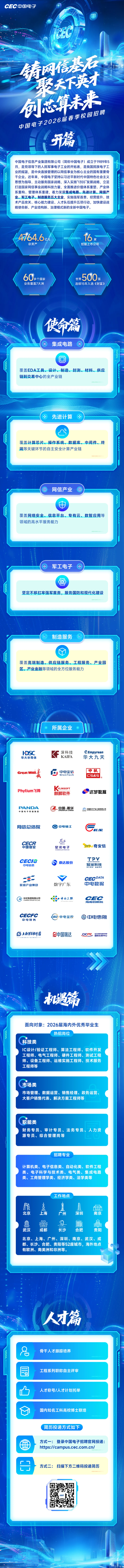 中国电子2026届春季校园招聘 时间:2026-04-27 10:59 作者:吴老师 半月讲坛温馨提示:信息均转载自官方网站,仅供参考,不构成相关服务。其最终解释权归相关单位所有,如对信息有疑问,请直接与相关单位联系。转载目的在于信息传递,我司不承担此类稿件其他行为的连带责任,如有侵权或需删除请联系我们。因此带来的不便敬请谅解! (责任编辑:吴老师) 上一篇:中海油服2026届春季校园招聘简章 下一篇:中国南水北调集团水网智慧科技有限公司2026年度春季公开招聘公告